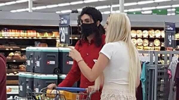 This individual, bearing a striking resemblance to Michael Jackson, might just be an impersonator unwinding at Walmart post-performance. His lack of enthusiasm for the shopping experience was noticeable.