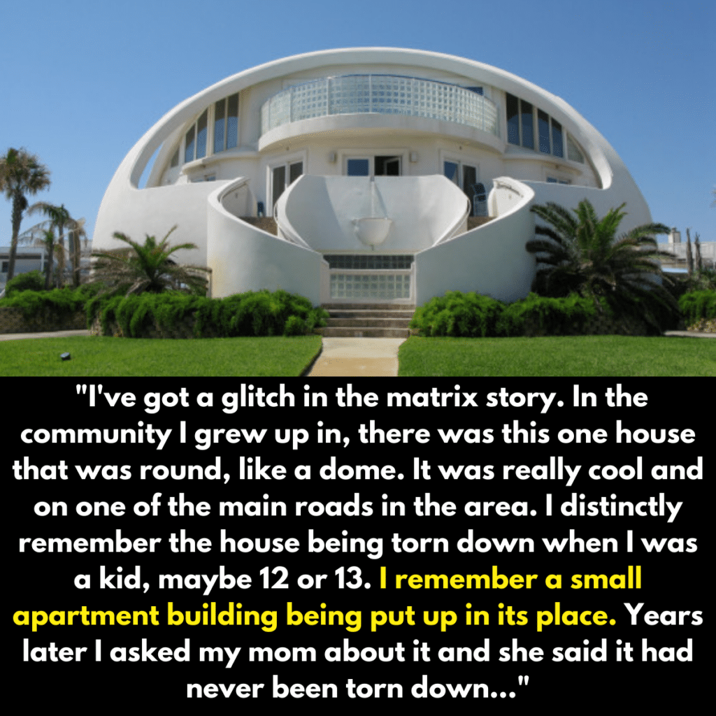 They clearly remember a domed house being knocked down and replaced with a new apartment complex. Supposedly, this happened when they were a kid, and it’s always stuck with them. Come to find out, the house still exists. In fact, it was never torn down, to begin with. Hopefully this person asked for photographic proof because there’s no way we’d believe it otherwise.